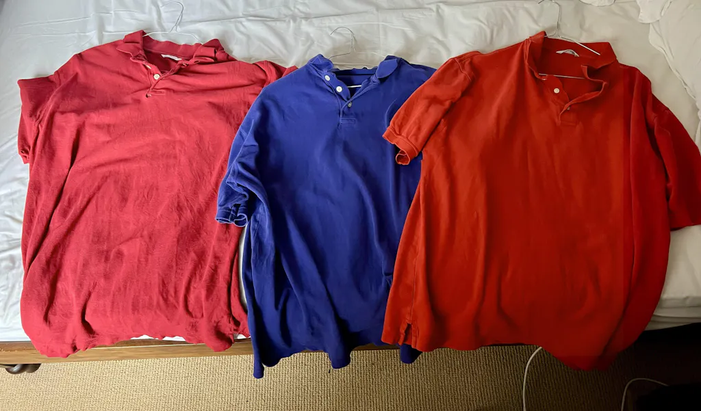 I used the dye to restore the colour to some faded shirts, and also to dye a towel that had faded very badly to a checkerwork of pink, white and blue. The result was a rich, even colour. In the photograph of the three polo shirts, the one on the left was the one coloured with this dye. Originally it was a faded raspberry colour. The other shirts were dyed with different Aybel dyes.